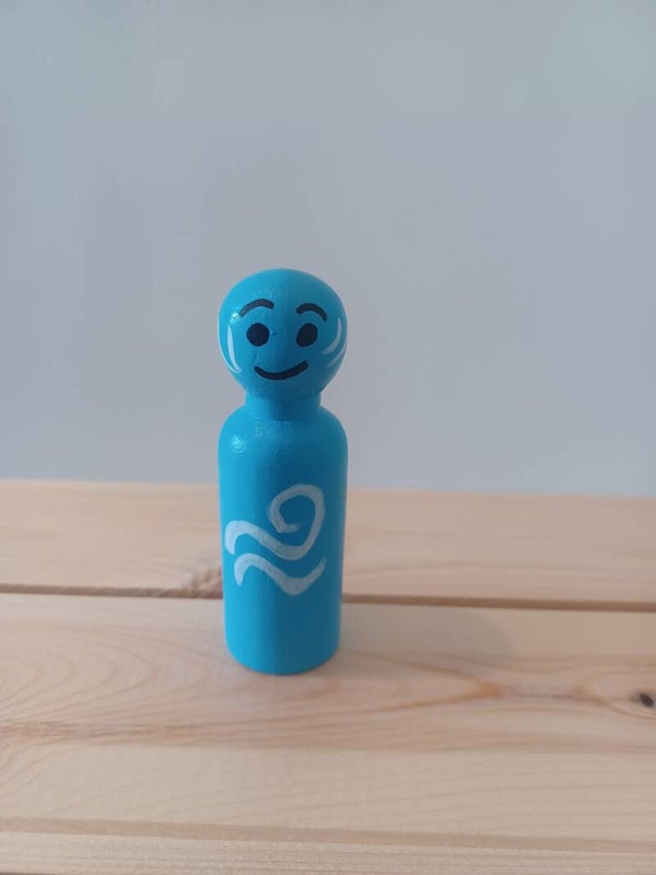 Peg doll van 9 cm. De figuurtjes zijn met de hand beschilderd met acrylverf en afgewerkt met een watergedragen vernis voor een mooie, duurzame glans. Perfect voor themaspel, decoratie of als vrolijke toevoeging aan een verzameling.